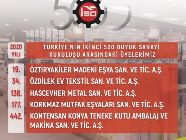2020 Yılı Türkiye’nin İkinci 500 Büyük Sanayi Kuruluşu Arasında Yer Alan Üyelerimizi Tebrik Ediyoruz!