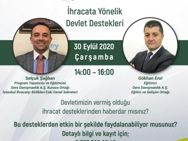 “İhracata Yönelik Devlet Destekleri” Eğitimimize Davetlisiniz!